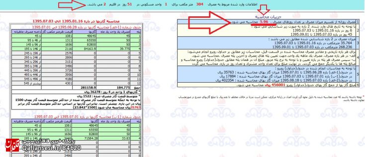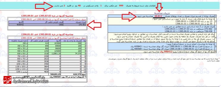 از 95/7/1 مهرماه تا تاریخ 95/9/1 یعنی اول آذر ماه قیمت هر متر مکعب گاز مصرفی با قیمت 1500 ریال و از تاریخ 95/9/1 از اول آذر به بعد بصورت پله کانی با جدول اقلیم بندی محاسبه می شود.