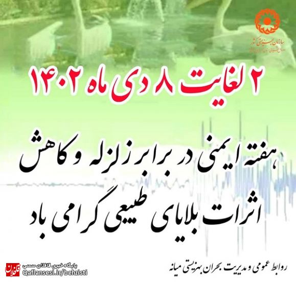 زلزله یكی از مخربترین مخاطرههای طبیعی بوده كه زیانهای اجتماعی و اقتصادی زیادی را به انسان رسانده است. انسان همواره با زلزله به عنوان یك تهدید طبیعی روبرو بوده است. ایران یكی از ۱۰ كشور جهان از نظر وقوع مخاطرههای طبیعی و حوادث غیر مترقبه است. ضمن گرامیداشت هفته ایمنی در برابر زلزله و کاهش اثرات بلایای طبیعی، امید است با بهره گیری از برنامه ها و فعالیتهای آموزشی و ترویجی متنوع در این خصوص به منظور ایجاد زمینه ارتقای آگاهی عمومی و شاخصهای ایمنی در برابر زمین لرزه، خود را آماده کنیم تا در صورت وقوع زلزله، بدانیم باید چه کار کنیم. آماده بودن و دانستن این که موقع زلزله چه کاری باید انجام داد، میتواند در صورت وقوع زلزله بعدی جان بسیاری از افراد را نجات دهد.
