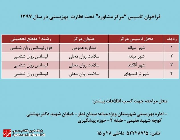 فراخوان تاسیس "مرکز مشاوره" تحت نظارت بهزیستی