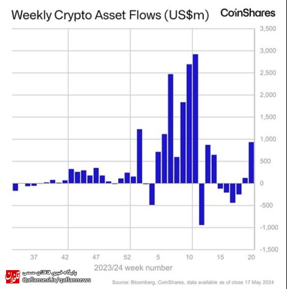 بر اساس دادههای CoinShares، محصولات سرمایهگذاری داراییهای دیجیتال بین 13 تا 17 مه 932 میلیون دلار جمعآوری کردند که ناشی از واکنش فوری به گزارش شاخص قیمت مصرفکننده (CPI) ایالات متحده بود، که به نظر میرسید فشارهای تورمی دوباره تعدیل شده است. علیرغم جریانهای ورودی بالاتر، حجم هفتگی نسبتاً پایین و در سطح 10.5 میلیارد دلار باقی ماند که تفاوت زیادی با 40 میلیارد دلار ثبت شده در ماه مارس دارد.